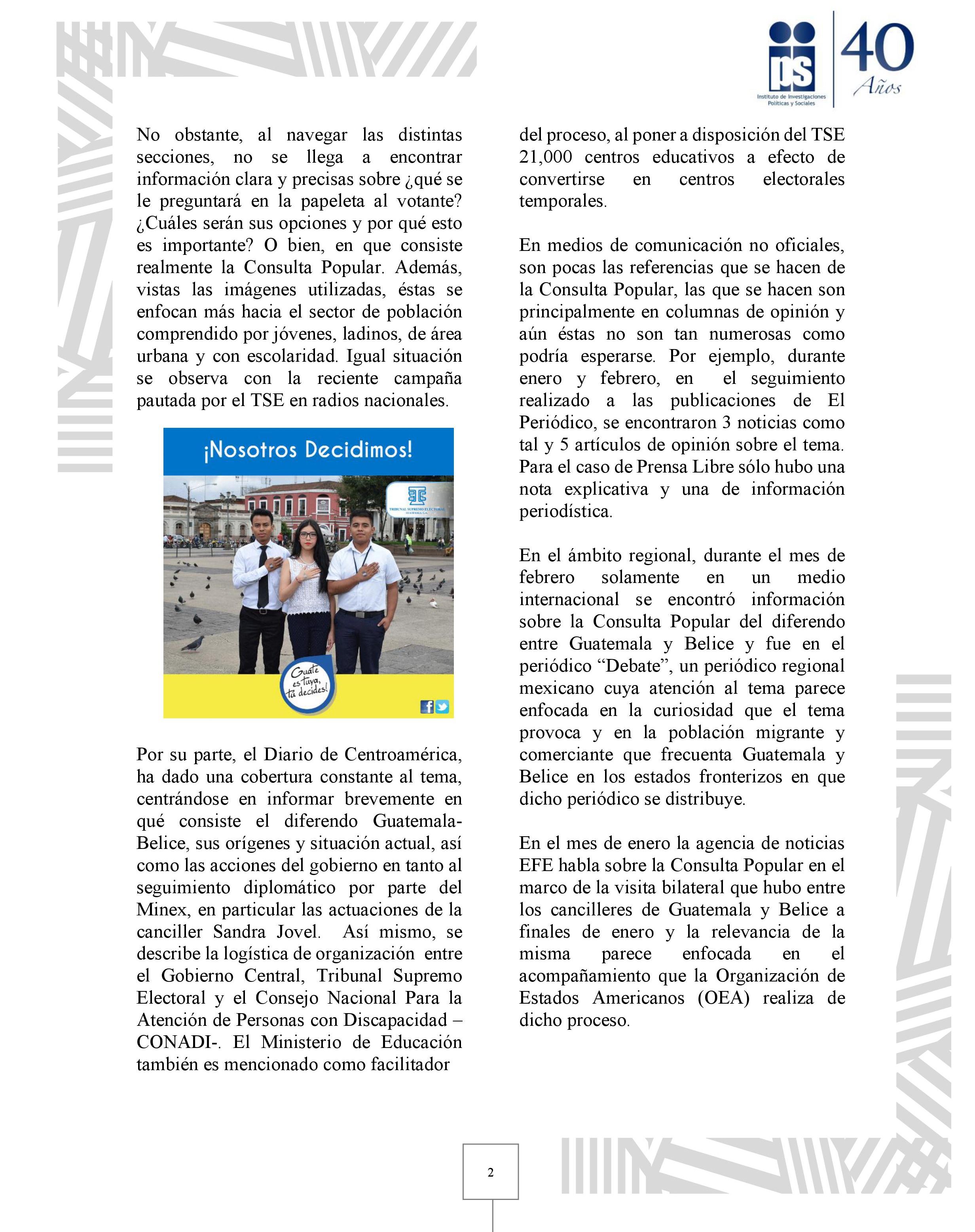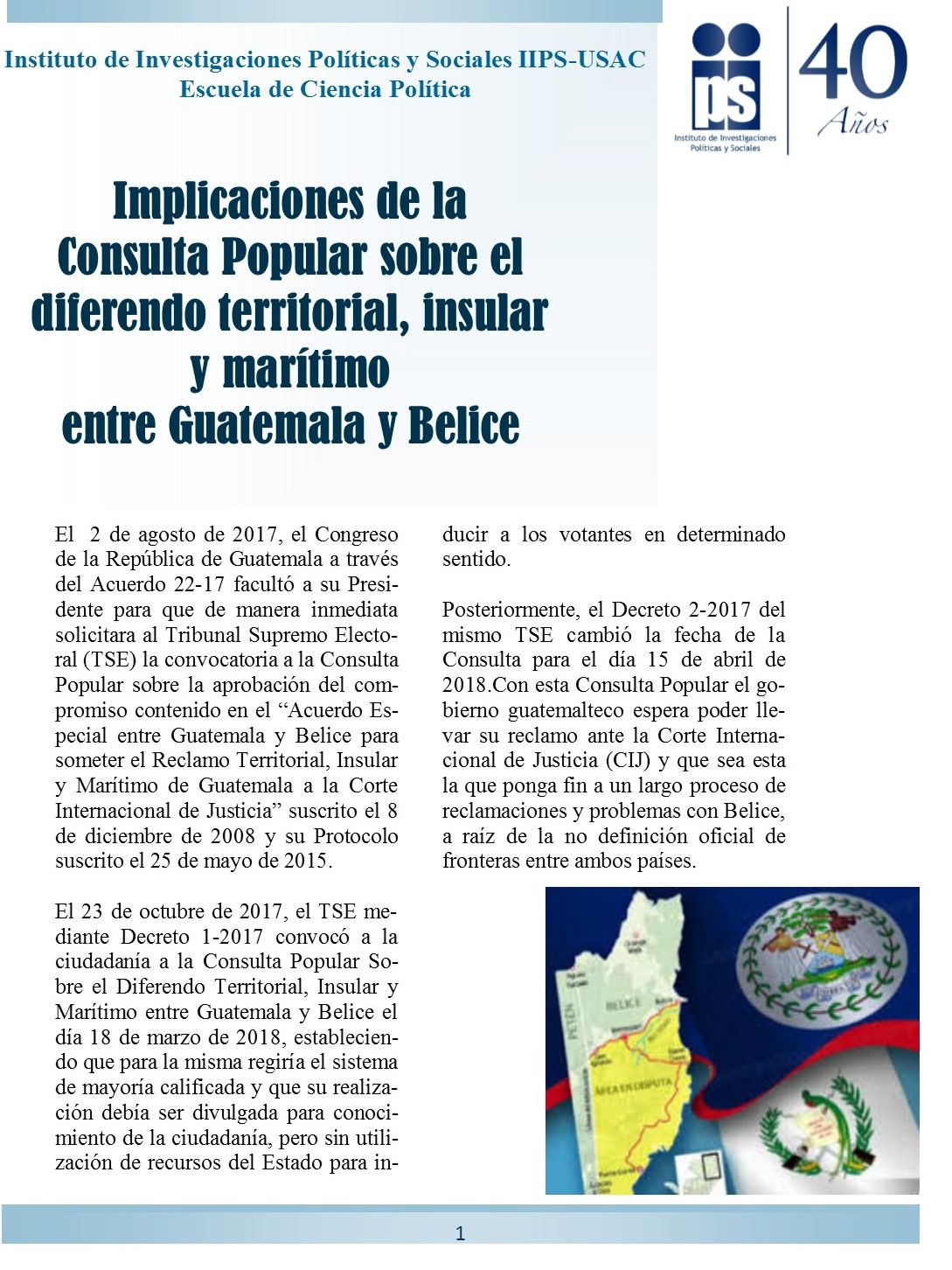 Consulta Popular sobre el Diferendo Territorial, Insular y Marítimo entre Guatemala y Belice, abril 2018.