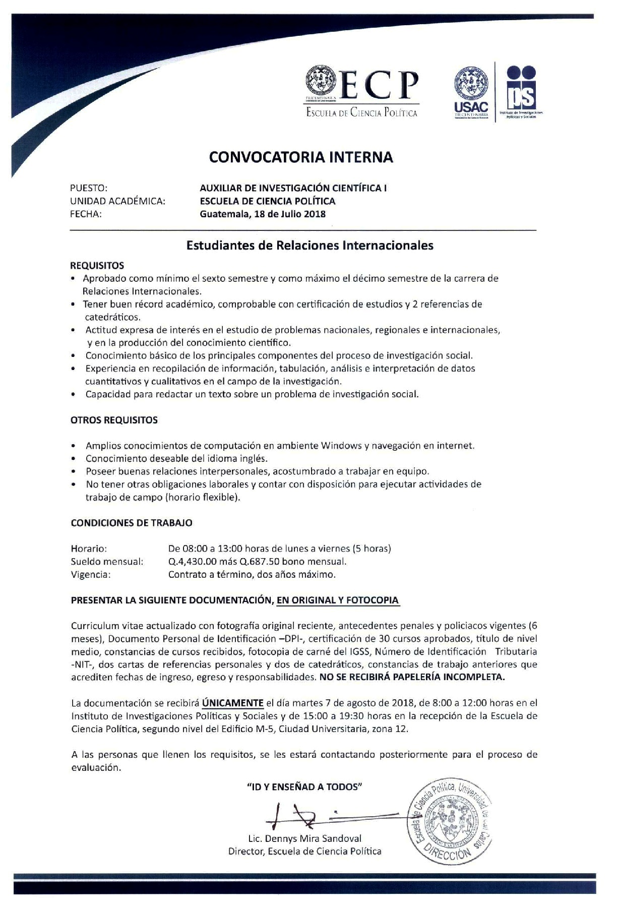 Convocatoria Auxiliar de Investigación RRII-001 por Administrador IIPS|Publicada 18 julio, 2018-en dimensiones 1226 × 1805 Navegación de imágenes Anterior Siguiente