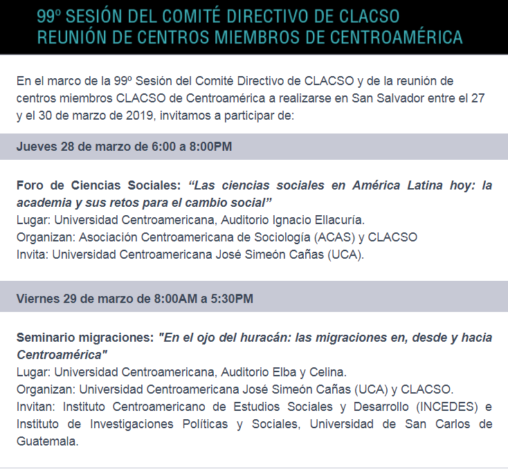 Sin categoría CLACSO en El Salvador, 27 al 30 de marzo de 2019 por Administrador IIPS|Publicada 18 marzo, 2019
