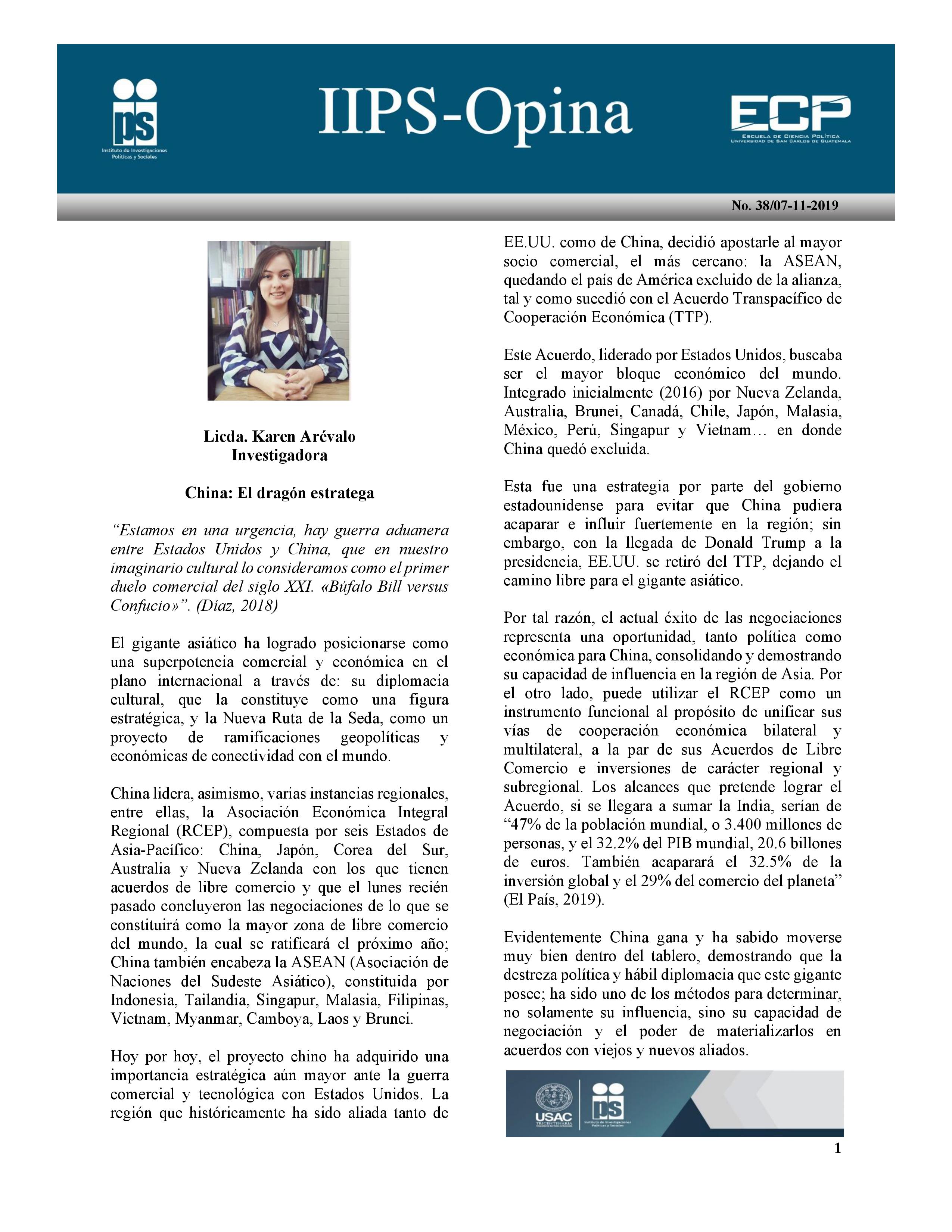 Sin categoría IIPS Opina No. 38 “China: El dragón estratega” por Administrador IIPS|Publicada 7 noviembre, 2019